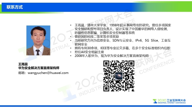 8月30日下午,在2020工業(yè)互聯(lián)網(wǎng)大會(huì)“工業(yè)互聯(lián)網(wǎng)安全”主題論壇上,華為技術(shù)有限公司安全領(lǐng)域解決方案首席架構(gòu)師王雨晨以《工業(yè)互聯(lián)網(wǎng)安全體系建設(shè)——半導(dǎo)體高端制造業(yè)安全實(shí)踐》為題作演講,分享了華為在工業(yè)互聯(lián)網(wǎng)安全體系建設(shè)方面的經(jīng)驗(yàn),以及華為在半導(dǎo)體高制造行業(yè)的應(yīng)用實(shí)踐。
