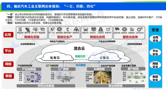 嘉賓演講視頻,請(qǐng)點(diǎn)擊下方鏈接觀看 專(zhuān)家說(shuō) “近幾年,商用車(chē)客戶結(jié)構(gòu)和需求發(fā)生了很大變化,購(gòu)車(chē)關(guān)注點(diǎn)也從價(jià)格向全生命周期運(yùn)營(yíng)成本TCO轉(zhuǎn)變。同時(shí),個(gè)性化的定制需求逐漸增多,智能網(wǎng)聯(lián)技術(shù)變革,為商用車(chē)行業(yè)帶來(lái)了新的機(jī)遇,打開(kāi)產(chǎn)品價(jià)值上升的通道,同時(shí)也為商用車(chē)市場(chǎng)競(jìng)爭(zhēng)開(kāi)創(chuàng)了新賽道。在此基礎(chǔ)上,福田汽車(chē)建起完善的“一云、四聯(lián)、四化”的工業(yè)互聯(lián)網(wǎng)頂層架構(gòu),指引福田汽車(chē)工業(yè)互聯(lián)網(wǎng)做到數(shù)據(jù)安全、網(wǎng)絡(luò)安全、平臺(tái)安全、應(yīng)用安全,同時(shí)助力工業(yè)生產(chǎn)的過(guò)程優(yōu)化、企業(yè)資源配置優(yōu)化及汽車(chē)運(yùn)行的智能化。未來(lái),福田汽車(chē)將加強(qiáng)力度推進(jìn),將借助5G+工業(yè)互聯(lián)網(wǎng)模式,打造新的汽車(chē)產(chǎn)業(yè)生態(tài),變革汽車(chē)產(chǎn)業(yè)體系,提升國(guó)產(chǎn)汽車(chē)品牌整體競(jìng)爭(zhēng)力。”