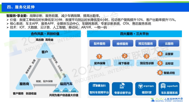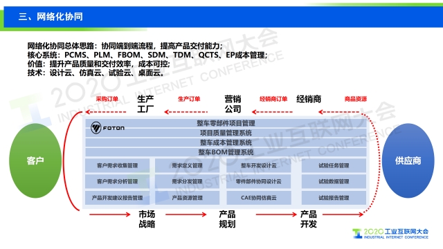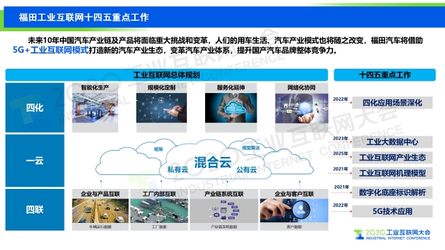 在2020工業(yè)互聯(lián)網(wǎng)大會(huì)工業(yè)互聯(lián)網(wǎng)“5G與工業(yè)互聯(lián)網(wǎng)融合發(fā)展”主論壇上,北汽福田汽車(chē)集團(tuán)副總經(jīng)理?xiàng)顕?guó)濤發(fā)表題為《工業(yè)互聯(lián)網(wǎng)賦能商用車(chē)第一品牌》的演講,分享福田汽車(chē)對(duì)工業(yè)互聯(lián)網(wǎng)的探索及實(shí)踐經(jīng)驗(yàn)。
