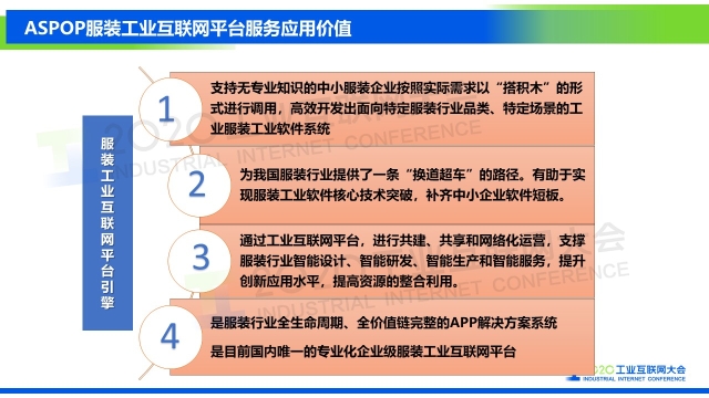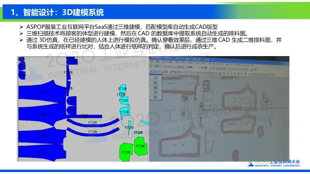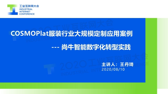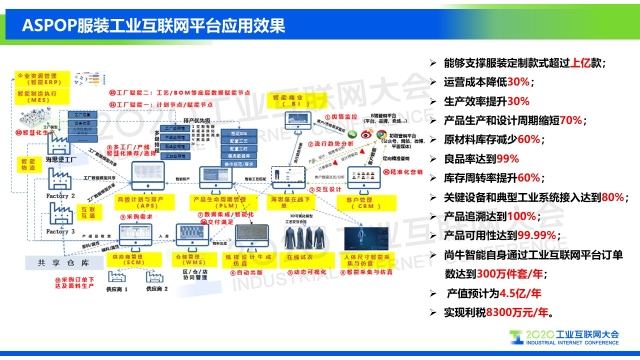 點(diǎn)擊下方鏈接,查看演講實(shí)錄: 專家說(shuō) “海思堡是COSMOPlat賦能紡織服裝行業(yè)的一個(gè)鮮活例子,消費(fèi)者足不出戶就可以實(shí)現(xiàn)在線試衣,量身定制,企業(yè)則通過(guò)完整的工業(yè)互聯(lián)網(wǎng)平臺(tái)系統(tǒng)架構(gòu),實(shí)現(xiàn)業(yè)務(wù)流程的標(biāo)準(zhǔn)化和數(shù)據(jù)化驅(qū)動(dòng);全品類大規(guī)模定制的全流程數(shù)據(jù)化和數(shù)據(jù)實(shí)時(shí)化,使企業(yè)的運(yùn)營(yíng)成本降低30%,生產(chǎn)效率提高30%,產(chǎn)品生產(chǎn)和設(shè)計(jì)周期縮短70%,原料庫(kù)存減少60%,成品庫(kù)存幾乎為零。相信在不久的將來(lái),我們會(huì)看到COSMOPlat賦能更多的紡織服裝企業(yè)。” 以下是演講PPT 敬請(qǐng)閱讀
