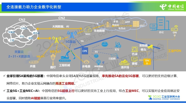 “中國電信為工業企業打造了一個高質量的外網——CN2-DCI,它同時也是連接數據中心之間的一個高帶寬的高質量網絡。它可以覆蓋全國幾乎所有的地市,同時連接了中國電信100多個云計算中心和200多個大型的主流IDC,這樣網和云就緊密連接在一起,而且是安全的連接在一起。同時,這個網絡還可以提供泛在接入,包括固網的接入以及移動網的接入。除此之外,CN2-DCI網絡還提供了一些新型的技術,像SRv6、EVPN,這些新型的技術在這個網絡里實現以后,使得我們傳統的IP網實現了更加快捷的轉發和服務能力,可以一跳入云,更好的為工業企業服務。”