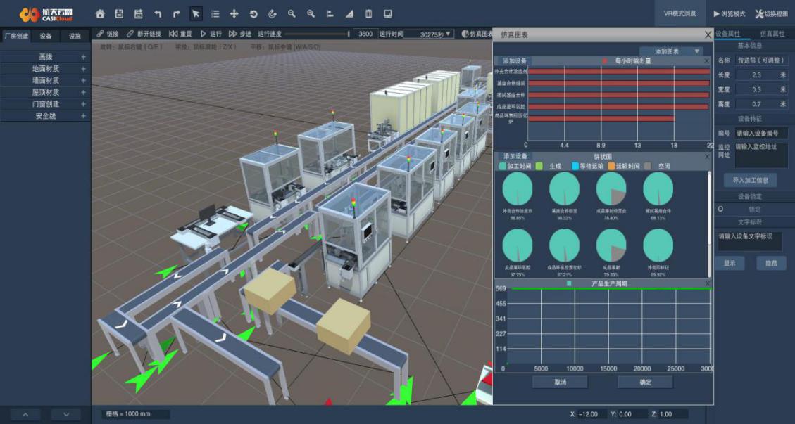 針對產品的多品種、小批量、柔性化生產對產線布局優化及資源高效調度的需求,應用AR/VR技術建立產線模型及虛擬生產環境,搭建虛擬工廠,實現遠程監控,并利用仿真工具對產線布局、物流設計、節拍等進行仿真,構建數字孿生模型,為產線提供優化指導。