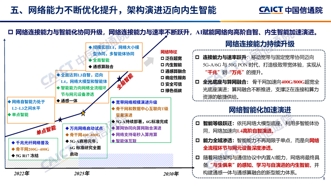 五、網(wǎng)絡(luò)能力不斷優(yōu)化提升,架構(gòu)演進(jìn)邁向內(nèi)生智能