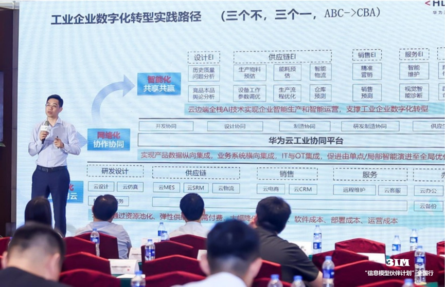 與會(huì)單位圍繞政府政策、數(shù)據(jù)融合互操作、數(shù)字化工具供給、數(shù)字化技術(shù)應(yīng)用等方面展開交流和對(duì)接,并分別就中小企業(yè)數(shù)字化發(fā)展路徑、信息模型賦能、未來(lái)建議等進(jìn)行主題研討。中小企業(yè)數(shù)字化轉(zhuǎn)型實(shí)踐路徑包含三個(gè)階段:一是數(shù)據(jù)資源池化,企業(yè)研發(fā)設(shè)計(jì)、供應(yīng)鏈、銷售、服務(wù)、辦公等數(shù)據(jù)可通過(guò)公有云來(lái)滿足各業(yè)務(wù)階段數(shù)字化轉(zhuǎn)型需求,降低軟件部署和運(yùn)營(yíng)成本。二是網(wǎng)絡(luò)化,通過(guò)產(chǎn)品數(shù)據(jù)縱向集成,業(yè)務(wù)系統(tǒng)橫向集成,促進(jìn)由單點(diǎn)/局部智能向全局優(yōu)化發(fā)展。三是智能化,利用云邊端全棧AI技術(shù)實(shí)現(xiàn)企業(yè)智能化生產(chǎn)和運(yùn)營(yíng)。
