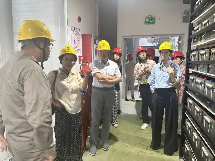 在國網雉城儲能電站,雙碳組調研組參觀了儲能電站的蓄電池室和用變開關室,一組組電池整齊碼放在電池架上,場面頗為壯觀:作為全國首個鉛碳電池電網側儲能電站,電站共有兩個蓄電池室,40余個電池架,每個電池架共8層,共有鉛酸蓄電池2萬余個,充滿一次電可同時滿足2500戶家庭一天的用電量。雉城儲能電站通過智慧能量管理系統實現充放電靈活調度,滿功率響應調節精度能夠達到98.3%。通過儲能電站功率指令精細化分配,還能有效減少儲能電站充放電切換次數,提高儲能電站各電池堆一致性均衡速度,提升電站的整體使用壽命。