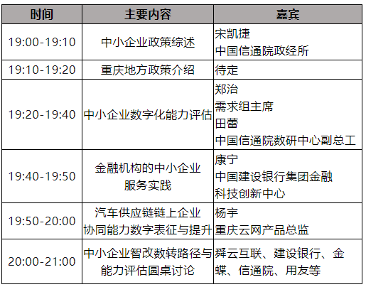 “我為企業辦實事”供需對接會(19:00-21:00)