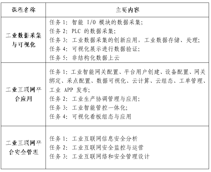 工業(yè)互聯(lián)網(wǎng)平臺應用課程設(shè)置: