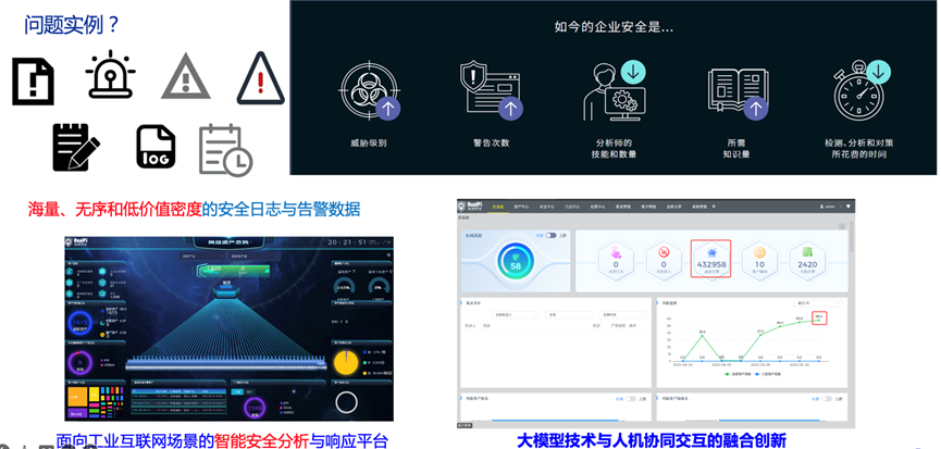 安全組提出構(gòu)建一個(gè)面向工業(yè)互聯(lián)網(wǎng)場(chǎng)景的智能安全分析與響應(yīng)平臺(tái),通過(guò)工業(yè)大模型技術(shù)與人機(jī)協(xié)同的創(chuàng)新應(yīng)用,研制成套的自主可控基于工業(yè)大模型的工業(yè)安全運(yùn)營(yíng)中心系統(tǒng),開發(fā)針對(duì)工業(yè)互聯(lián)網(wǎng)領(lǐng)域及安全運(yùn)營(yíng)需求定制化的模型和系統(tǒng),通過(guò)模型的語(yǔ)義解析和關(guān)聯(lián)計(jì)算,快速?gòu)膹?fù)雜數(shù)據(jù)中提取高價(jià)值信息,生成清晰的網(wǎng)絡(luò)安全態(tài)勢(shì)視圖,使安全運(yùn)營(yíng)團(tuán)隊(duì)能夠快速判斷事件的嚴(yán)重程度并做出響應(yīng)。
