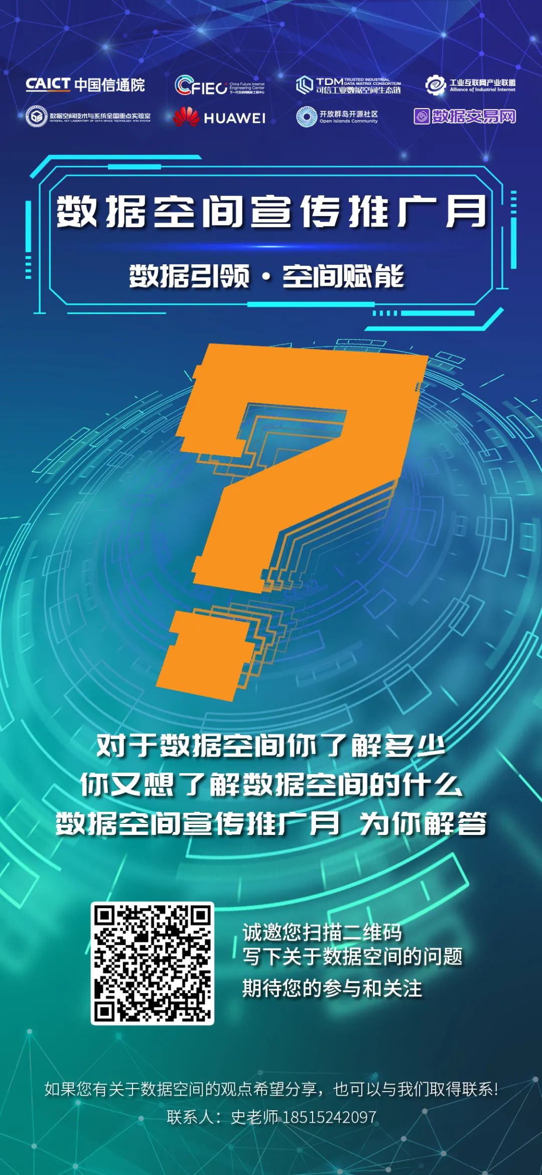 數據空間問卷小調研活動強勢來襲!關于數據空間您有任何想咨詢、想了解的內容,都可以掃描下方海報中的二維碼進行提問。