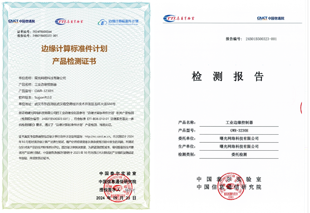 曙光網(wǎng)絡(luò)科技有限公司自主研發(fā)的工業(yè)邊緣控制器GWR-3230H順利通過本次“邊緣計(jì)算標(biāo)準(zhǔn)件計(jì)劃”產(chǎn)品測(cè)試,已在我國多個(gè)行業(yè)領(lǐng)域?qū)崿F(xiàn)廣泛應(yīng)用部署,有力推動(dòng)我國多個(gè)關(guān)鍵領(lǐng)域客戶新型工業(yè)化發(fā)展邁向新階段。