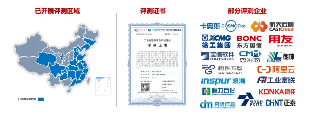 2018年至今,中國信息通信研究院信息化與工業(yè)化融合研究所工業(yè)互聯(lián)網(wǎng)測試中心累計在全國范圍內(nèi)評測20個省市近400余家工業(yè)互聯(lián)網(wǎng)平臺及千余款工業(yè)APP,涵蓋跨行業(yè)跨領(lǐng)域、特定行業(yè)/區(qū)域、特定專業(yè)技術(shù)等各類型平臺,設(shè)備管控、研發(fā)仿真、經(jīng)營管理等各類工業(yè)軟件。測評結(jié)果在促進(jìn)平臺架構(gòu)設(shè)計、應(yīng)用開發(fā)、模式創(chuàng)新、產(chǎn)品服務(wù)等迭代升級的同時,也為江蘇、安徽、廣東、貴州、四川、遼寧、浙江、北京等地提供有力政策支撐,推進(jìn)工業(yè)互聯(lián)網(wǎng)高質(zhì)量發(fā)展。