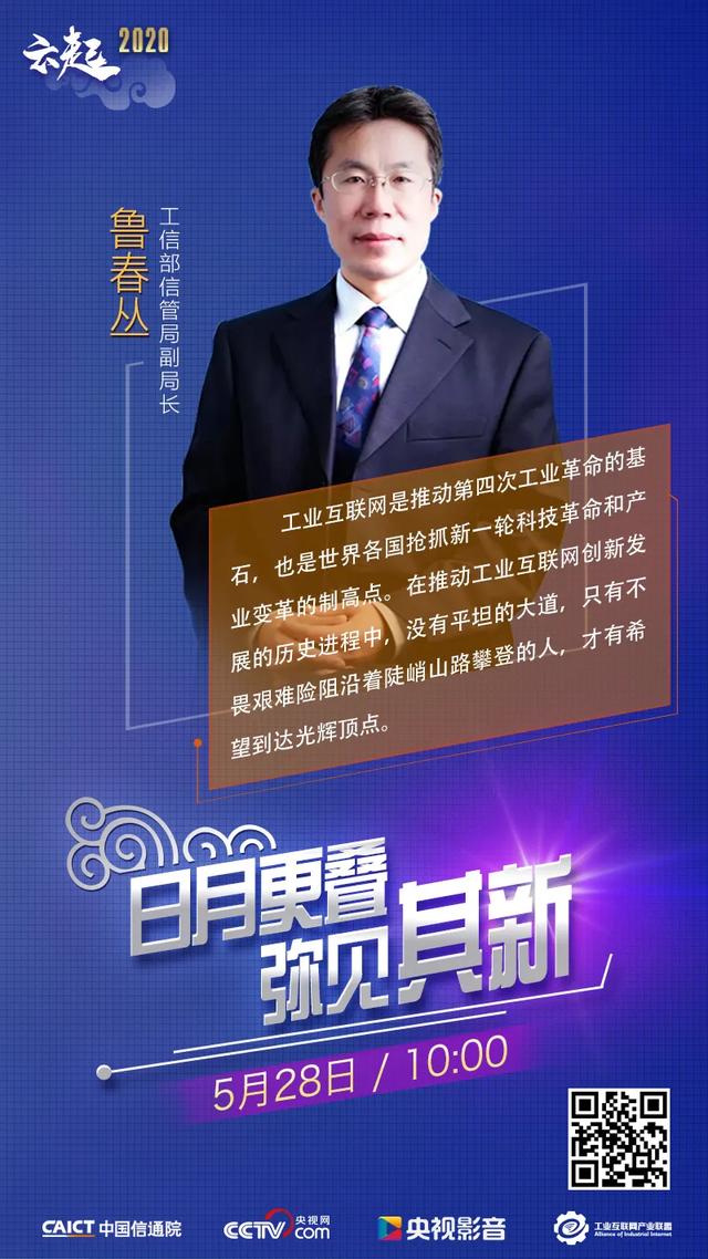 央視網(wǎng)攜手中國(guó)信息通信研究院推出“推動(dòng)工業(yè)互聯(lián)網(wǎng)加快發(fā)展”巔峰對(duì)話(huà)。鄔賀銓、魯春叢、劉多、周云杰、梁寶俊、欒廣富、陸川等業(yè)界大咖和央視主持人周運(yùn)討論新基建為中國(guó)經(jīng)濟(jì)發(fā)展帶來(lái)的機(jī)遇和動(dòng)能。5月28日10:00央視網(wǎng)多終端播出。