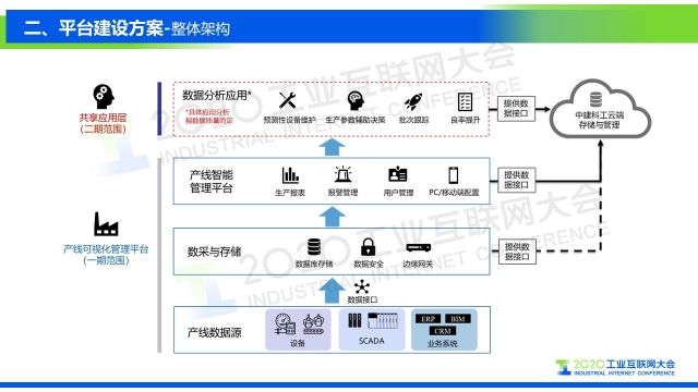點擊下方鏈接回看演講視頻: 專家說 “中建科工根據'數字化、信息化、智能化'的設計理念,充分利用工業PON網絡、智能生產管理系統、工業大數據平臺等先進技術,構建基于云架構的大數據分析平臺。通過建立工業互聯網大數據分析平臺,進行數據采集、分析、決策,優化提升可制造性和可服務性,形成企業智能管控閉環,提高生產效率,降低運營成本。” 以下是演講PPT 敬請閱讀