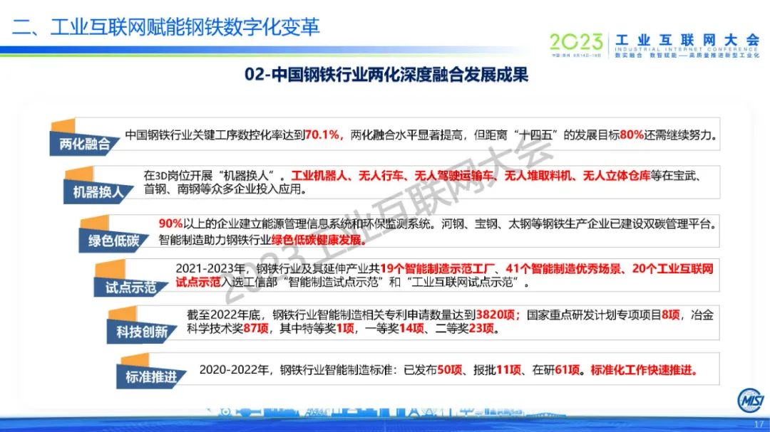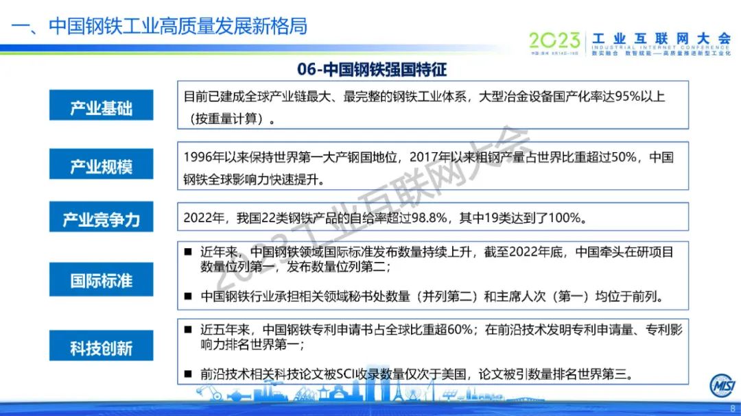 6月15日,在2023工業互聯網大會“工業互聯網最佳實踐高端論壇”上,中國鋼鐵工業協會副秘書長,冶金工業信息標準研究院黨委書記、院長張龍強發表了《“工業互聯網+鋼鐵”的高質量發展應用實踐》的主題演講。
