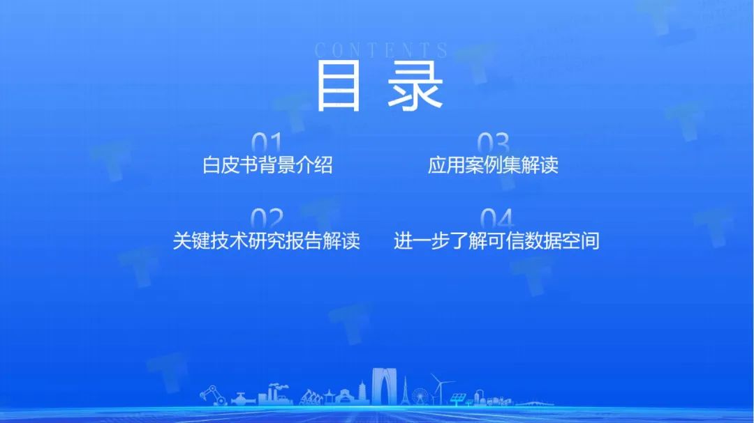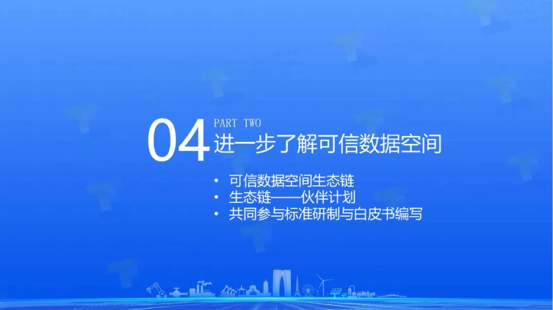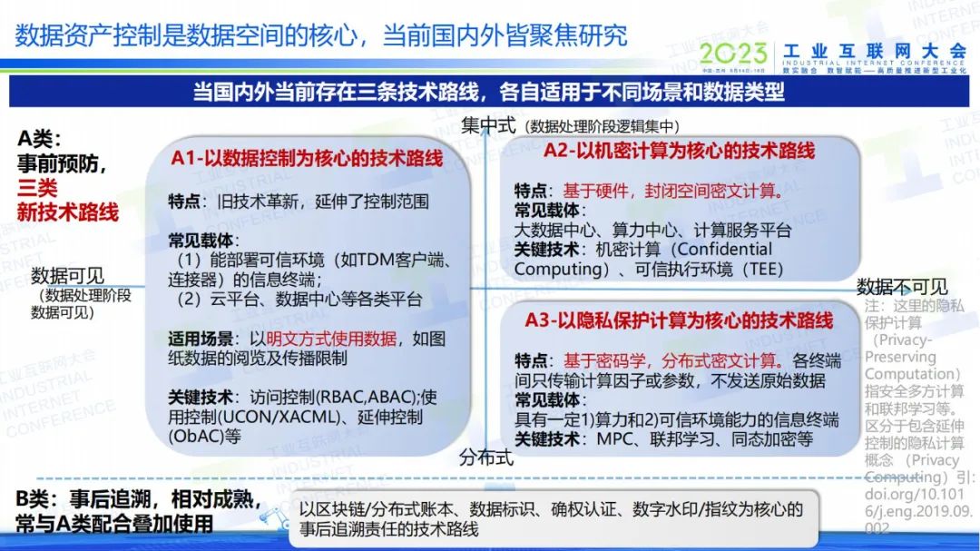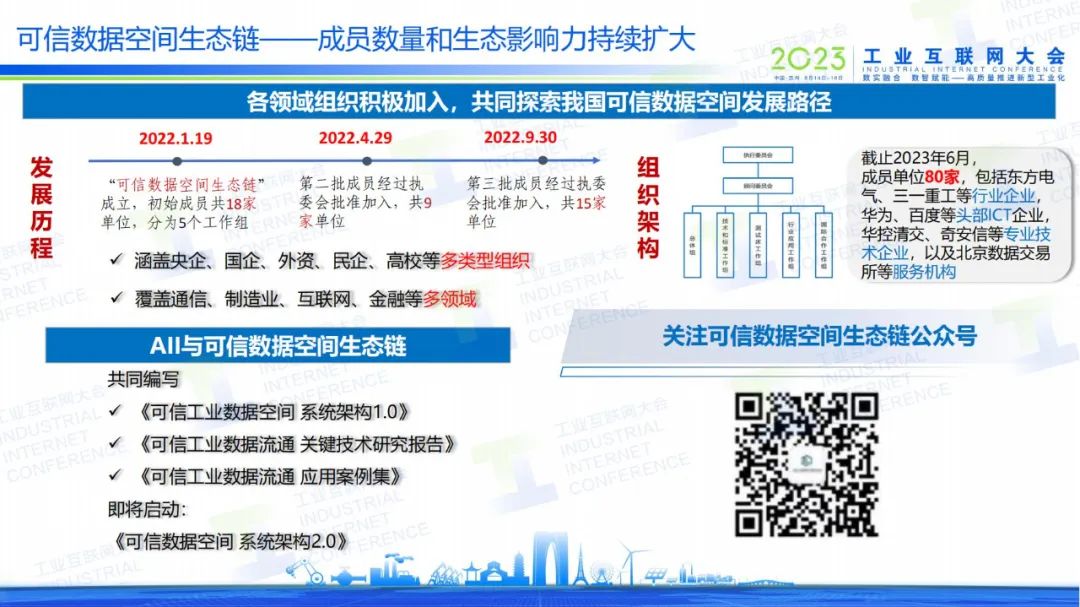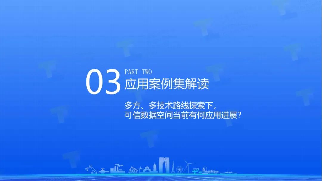 “可信數據空間是在現有的信息網絡上,通過搭建分布式的基礎設施進行體系的安排,保證數據提供方、數據使用方簽訂的數據協議的確認、履行和維護,從而解決數據提供方、使用方以及中間的算力算法,包括安全多方計算等這樣的一種數據服務的服務方以及政府監管方,各主體之間的安全與信任問題。”《可信數據流通關鍵技術研究報告》主要是研究如何通過技術手段去構建可信數據空間,以及如何保證數據基礎制度運行的閉環等問題。《可信工業數據流通應用案例集》歸納了可信數據空間的三大應用的方向的,第一類是構建行業和地方的應用,服務于行業和地方的應用,去構建行業和地方的局部數據空間;第二類是賦能現有的數據交易所,提供他們在數據交易之后對數據的保護能力;第三類是服務當前的工業互聯網平臺,通過提高用數據的安全可信能力,使得各類用戶愿意把自己的數據放到工業互聯網平臺上面。