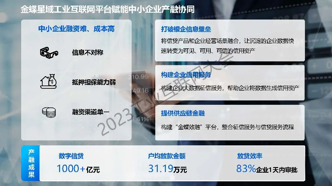 劉仲文表示工業(yè)互聯(lián)網(wǎng)推動領(lǐng)航企業(yè)向全要素、全流程、全生態(tài)數(shù)字化發(fā)展,加速中小企業(yè)產(chǎn)業(yè)集群模式轉(zhuǎn)變與可持續(xù)發(fā)展。金蝶星域工業(yè)互聯(lián)網(wǎng)平臺是以金蝶云蒼穹PaaS平臺為底座,為二十余行業(yè)的大型企業(yè)、中型企業(yè)和小微企業(yè)提供9大領(lǐng)域全流程數(shù)字化服務(wù),賦能中小企業(yè)產(chǎn)融協(xié)同,實現(xiàn)數(shù)字化轉(zhuǎn)型與升級。