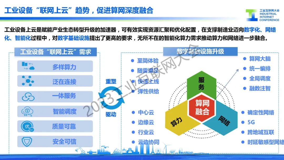 “工業(yè)設(shè)備上云是賦能產(chǎn)業(yè)生態(tài)轉(zhuǎn)型升級(jí)的加速器,可有效實(shí)現(xiàn)資源匯聚和優(yōu)化配置,在支撐制造業(yè)邁向數(shù)字化、網(wǎng)絡(luò) 化、智能化過程中,對(duì)數(shù)字基礎(chǔ)設(shè)施提出了更高的要求,無所不在的智能化算力需求推動(dòng)算力和網(wǎng)絡(luò)進(jìn)一步融合。”