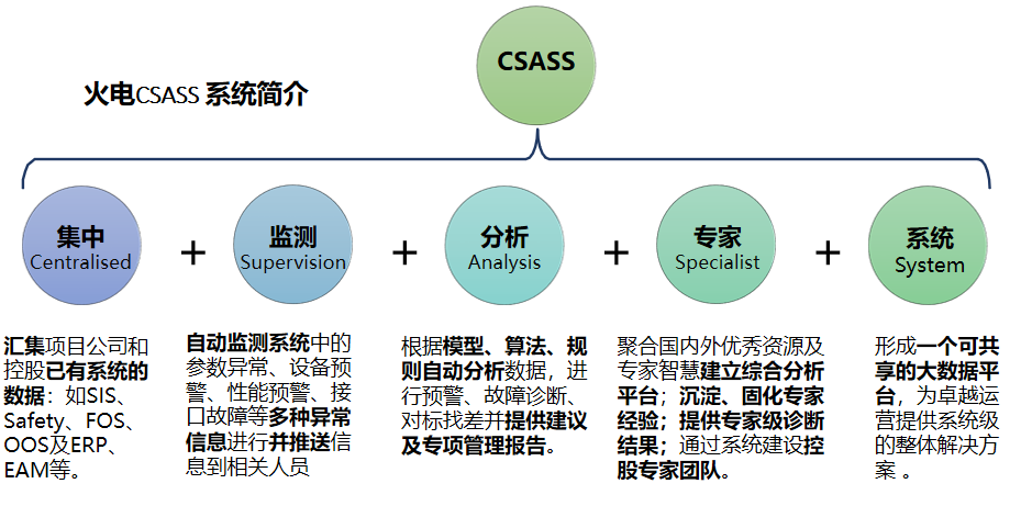 1、 華潤電力在多年的企業發展過程中,形成了“火電為主、控制上下游、多業態協同、實現低成本競爭”的發展模式。在新的市場競爭條件下,華潤電力迫切需要推進創新轉型發展,打造企業核心競爭力?;痣?CSASS 分析專家系統是華潤電力落實集團“華潤匯”戰略,打造行業安全可靠生產、高效運行、綠色環保的標桿,構建專業知識和能力高地,引領行業業務模式創新的重要抓手。