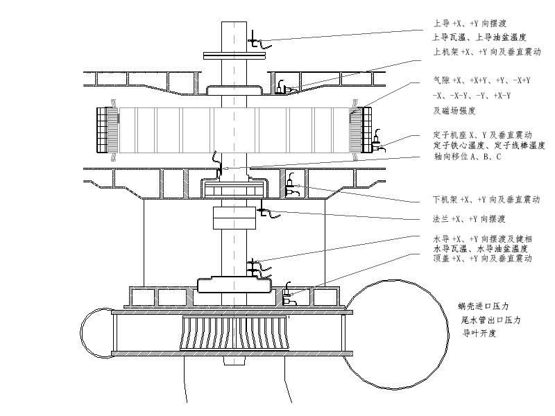 以機組負荷、運行工況、溫度、工作水頭做為邊界參數,對測量的振動、擺度、壓力脈動、氣隙等特征數據進行分段預警;在機組穩定運行,而且機組狀態穩定正常的情況下,當上述邊界條件相同時,機組擺度、振動等特征數據滿足正態分布規律,當用歷史樣本數據進行分段統計之后,獲得振動、擺度在不同負荷、溫度、運行工況下的中位值和分布的寬度,那么以這個中位值和寬度作為正常范圍,監測新數據是否超出統計范圍,就可以實現人大數據分析、人工智能判斷的識別訓練矩陣。